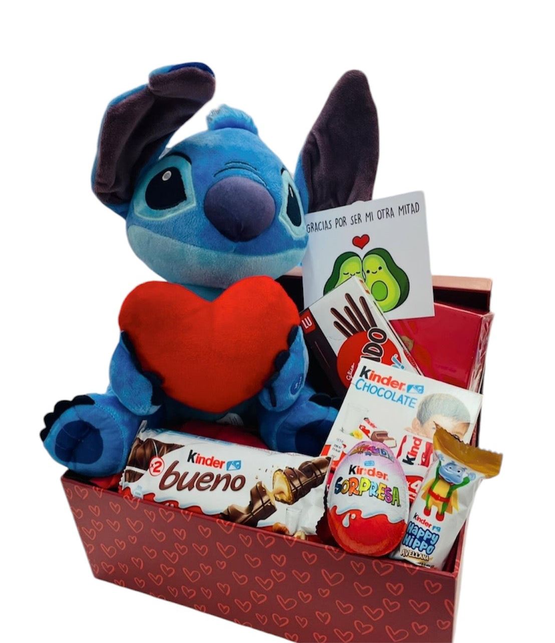 La caja dulce con stich de corazón original 100% es perfecta para mostrarle a esa persona especial cuánto la quieres. Con su diseño único y original, esta caja no solo endulzará su paladar, sino también su corazón. ¡Ideal para expresar tus sentimientos de una manera dulce y memorable!